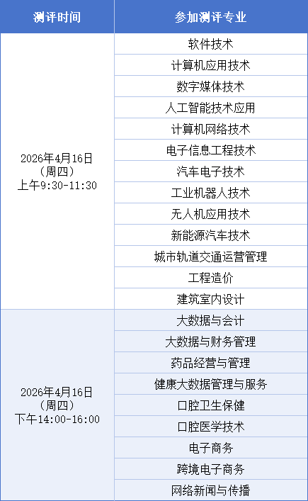 综合素质测评主要测评考生的综合素质及与专业学习相关的能力与特长,具体详见《浙江长征职业技术学院2026年高职提前招生综合素质测评实施方案》(另行制定,将在学校招生网站上公布)。